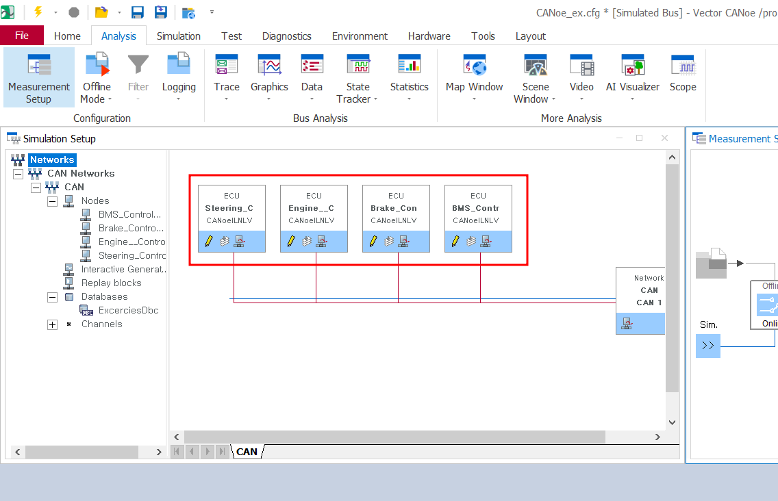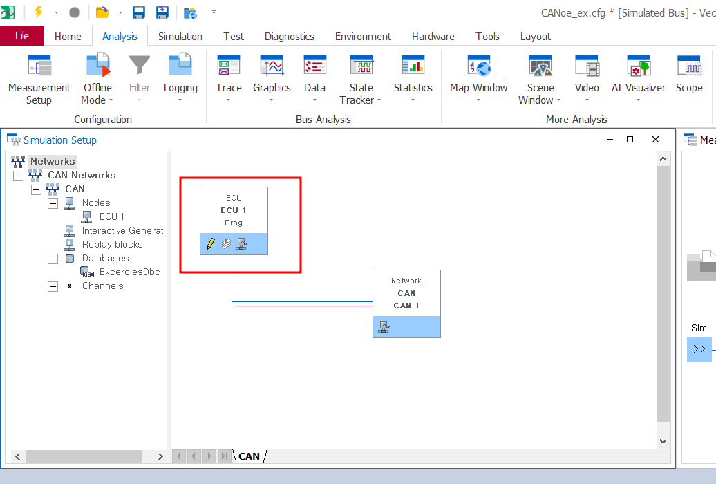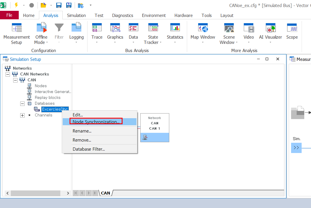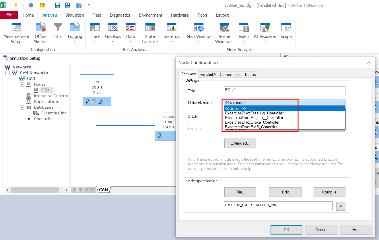 - ECU 오른쪽 마우스 클릭 => Configuration 클릭 => Network node에서 dbc에서 정의한 ECU로 변경할 수 있음