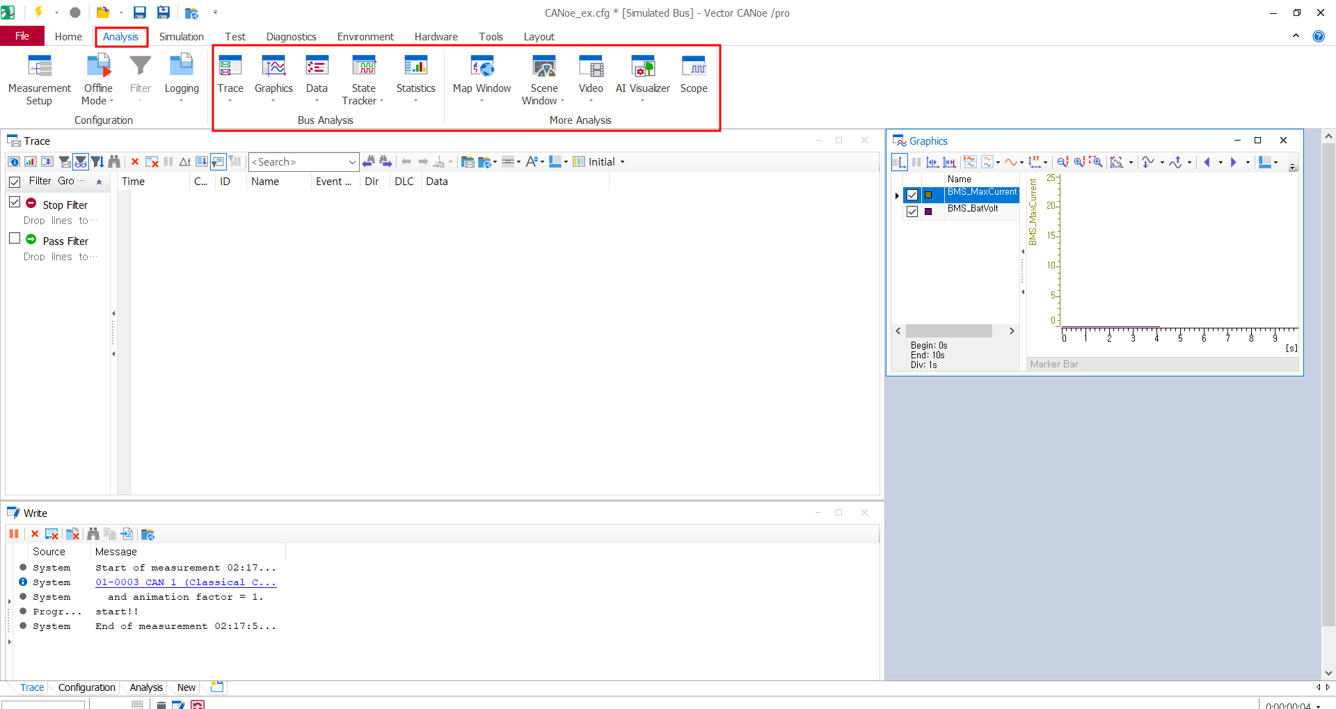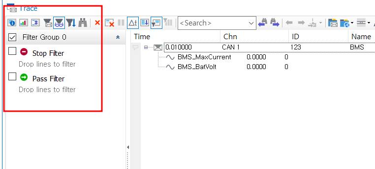 - Trace window에서 정의된 CAN data를 확인할 수 있음