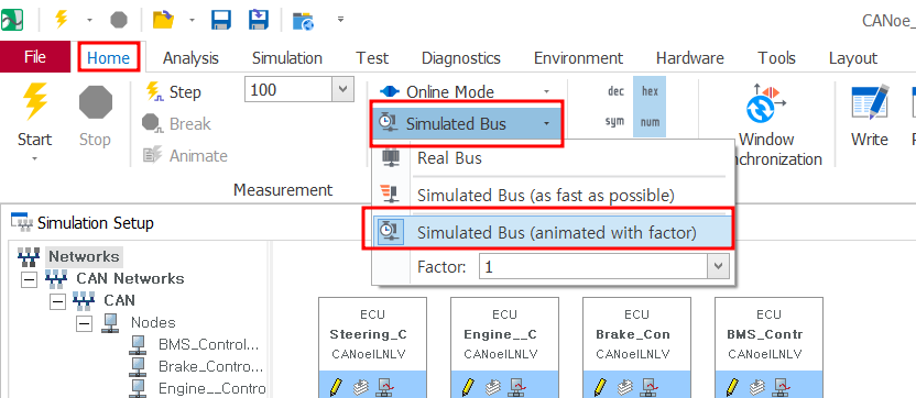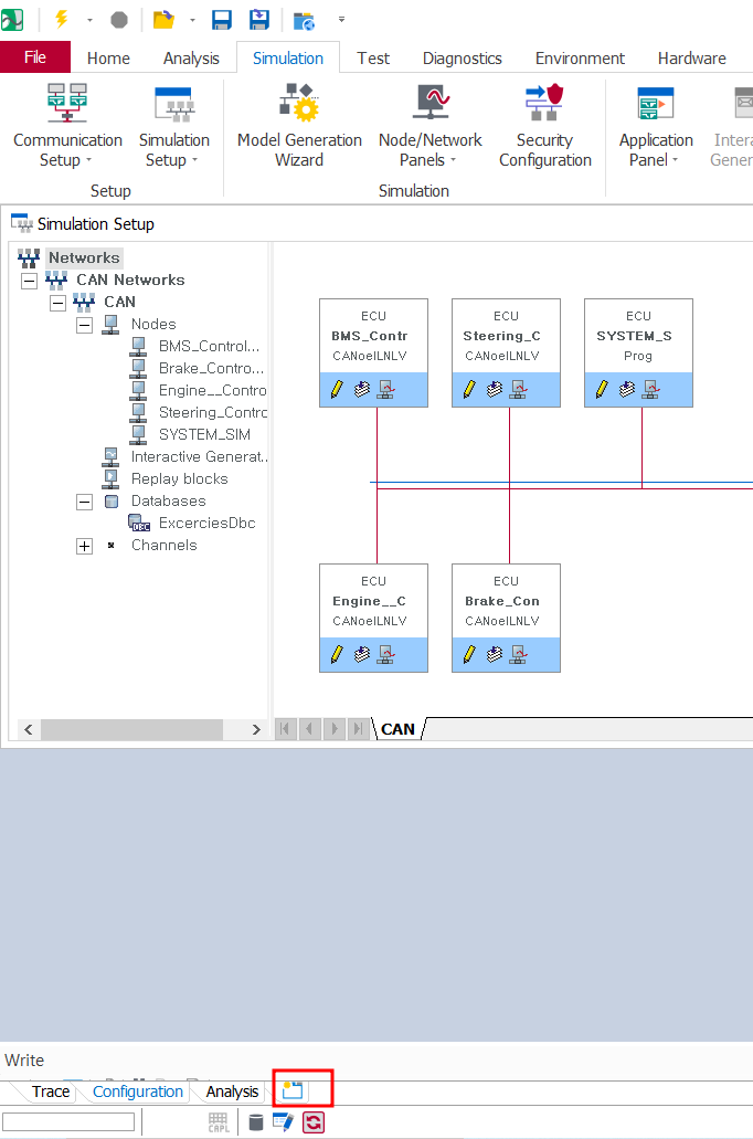 - Simulation Setup에서 Databases => Add => 만들어 논 dbc파일을 열기