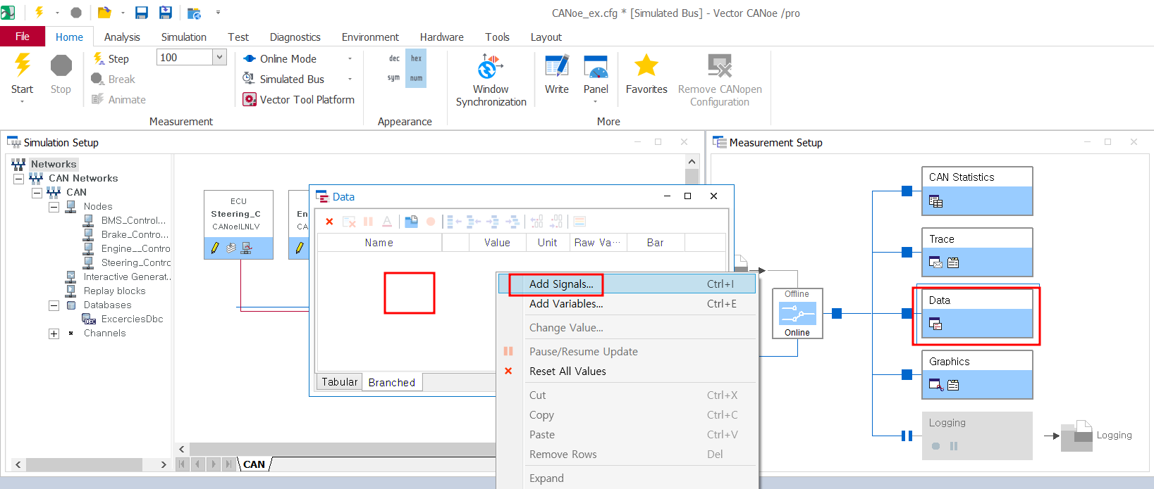 - 왼쪽에는 dbc에 정의된 data를 확인 가능