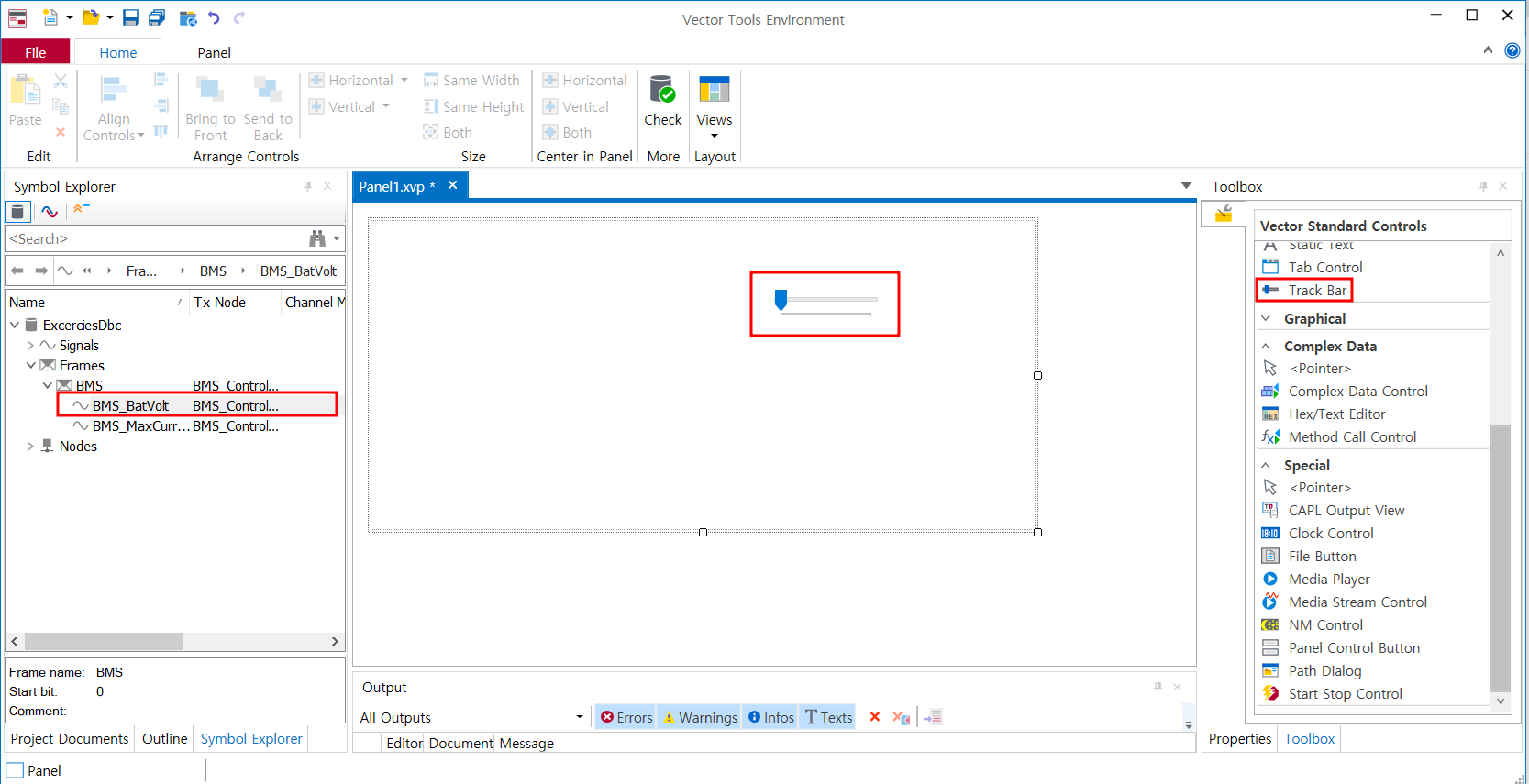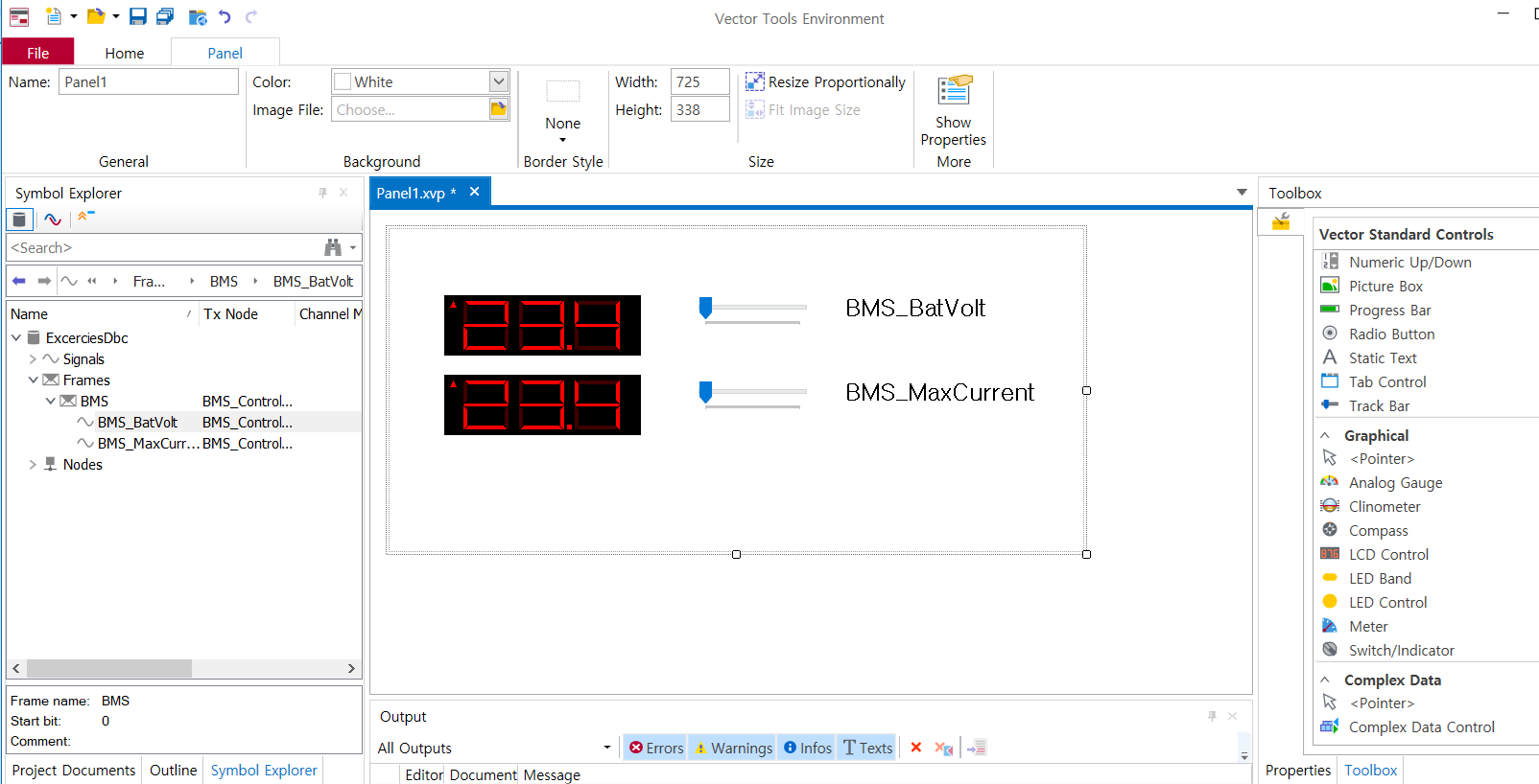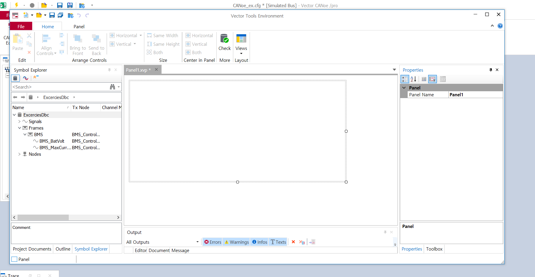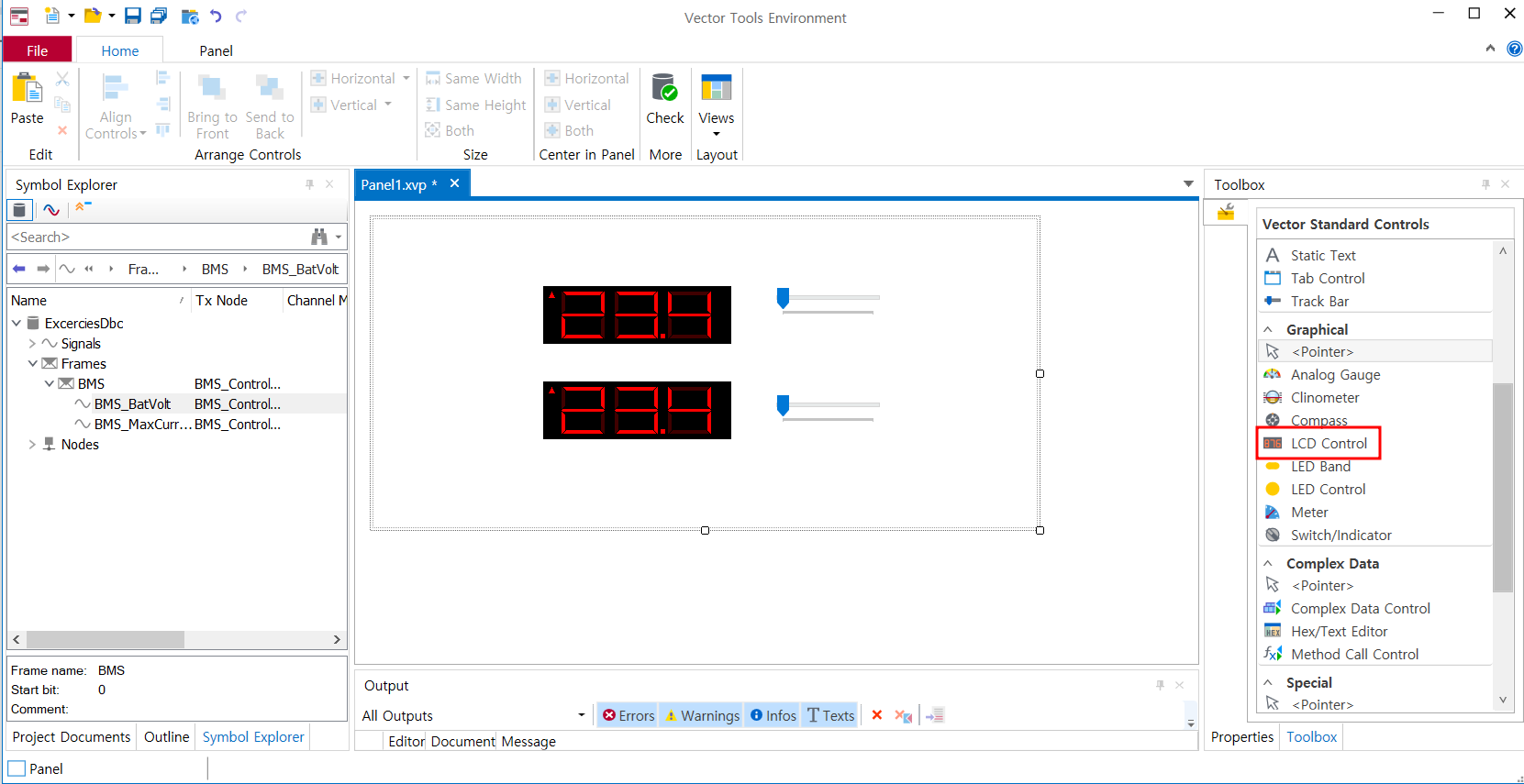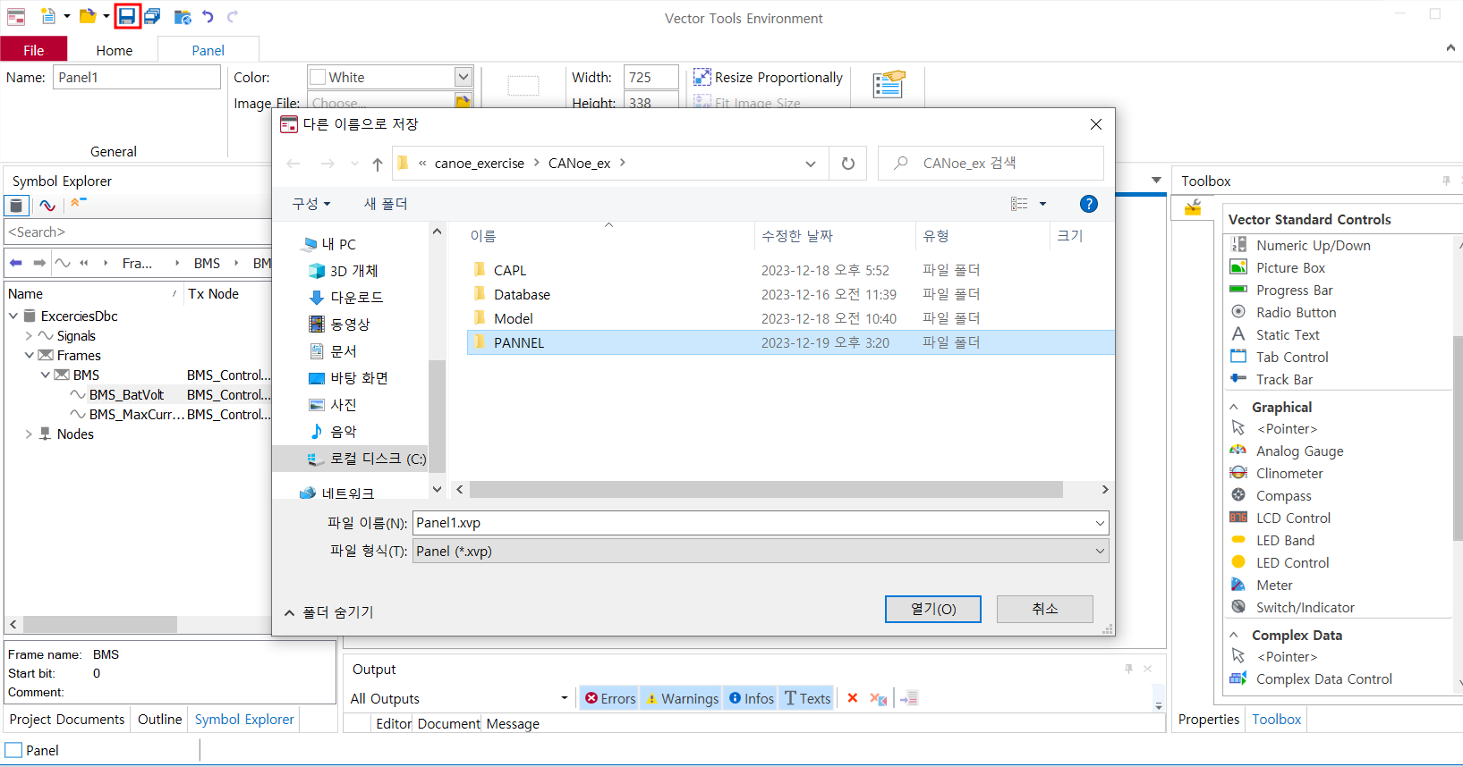 - 오른쪽 아래 Toolbox를 누르면 CANoe에서 제공하는 panel 라이브러리를 사용가능